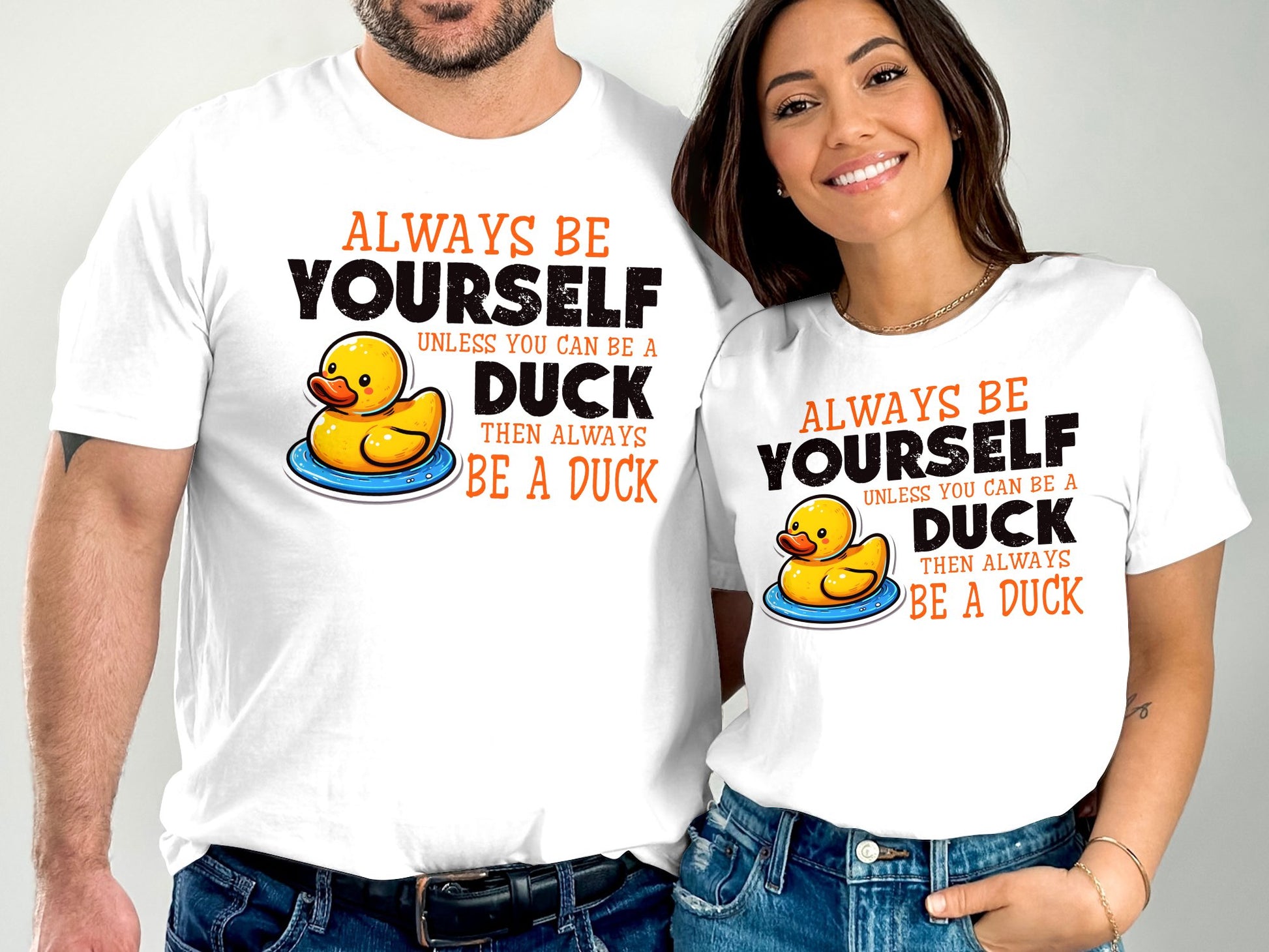 Embrace your daring side with our "Always be yourself, unless you can be a Duck" shirt. Be bold, be a risk-taker, be a Duck. Take on the adventure of life and always be true to yourself. Don't just fit in, stand out like a Duck!