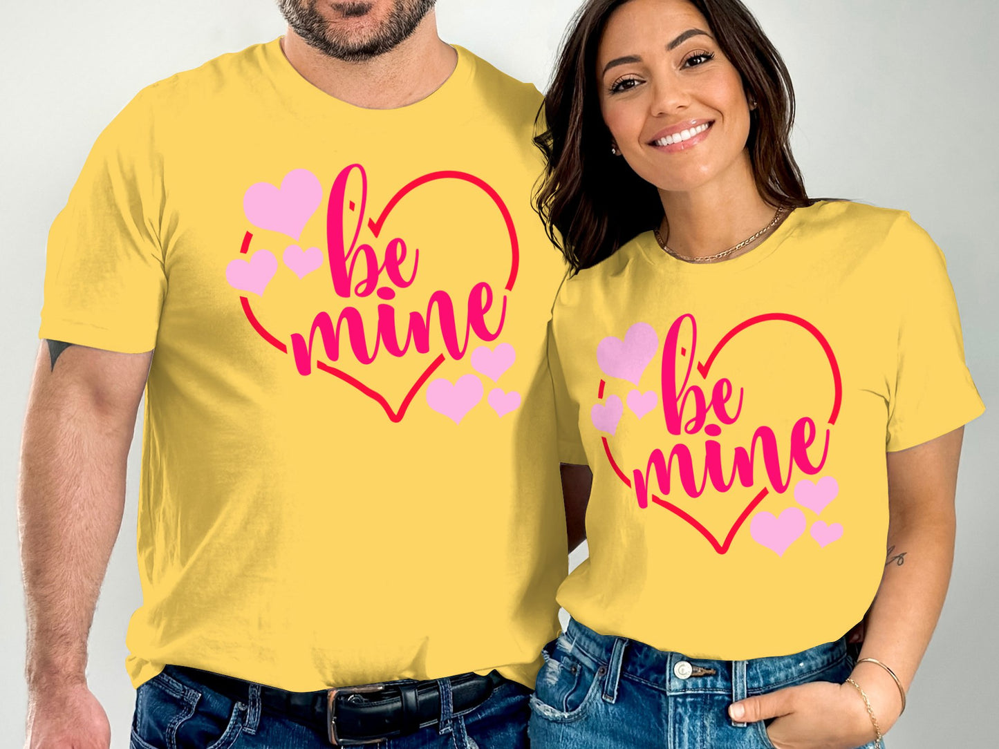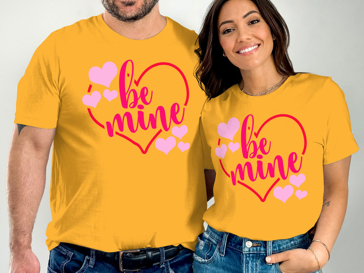 Celebrate love with this adorable "Be Mine" T-shirt! Featuring a vibrant pink and red design with hearts, this shirt is perfect for Valentine's Day or any romantic occasion. Made from soft, high-quality fabric, it offers both comfort and style. Whether gifting it to someone special or treating yourself, this T-shirt is a charming addition to any wardrobe. Available in various sizes for the perfect fit.