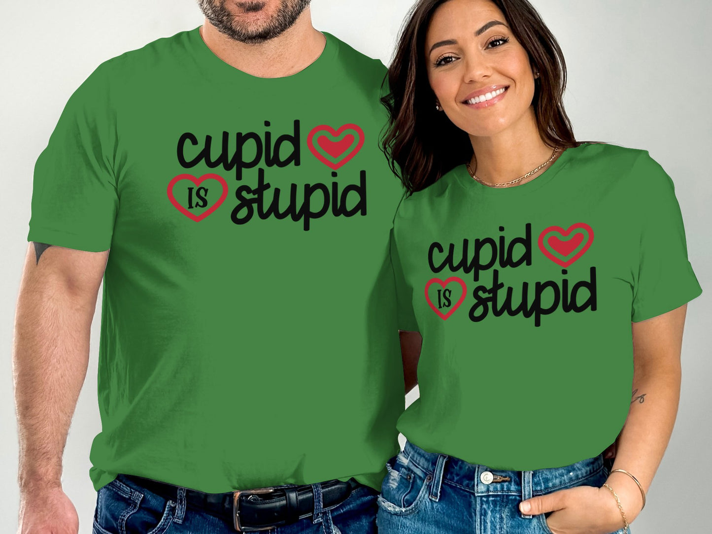 Express your anti-Valentine's Day sentiments with this bold and witty "Cupid is Stupid" T-Shirt! Perfect for those who aren't fans of the holiday, this tee features a playful and eye-catching design with the words "Cupid is Stupid" in stylish typography and heart graphics. Made from high-quality, soft fabric, this shirt is comfortable to wear all day long. It's a great conversation starter and a fun way to make a statement. Available in various sizes for both men and women. Perfect as a gift for friends or for yourself!