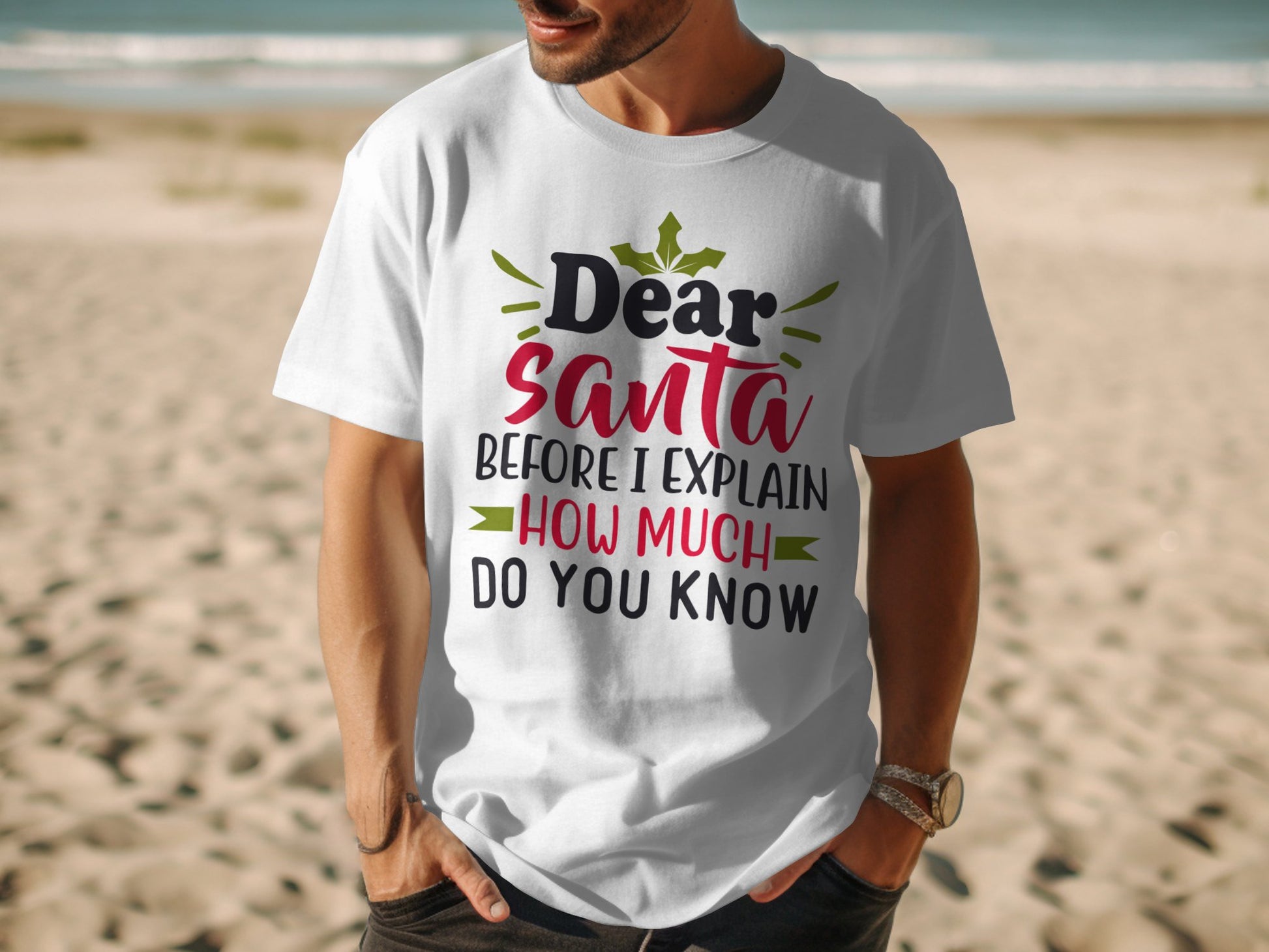 Spread holiday cheer with this hilarious "Dear Santa Before I Explain How Much Do You Know" Christmas T-Shirt. Made from soft, comfortable fabric, this shirt is perfect for festive gatherings, holiday parties, or just lounging at home. Available in multiple sizes and colors, it's an ideal gift for friends, family, and even yourself. Celebrate the season with humor and style!
