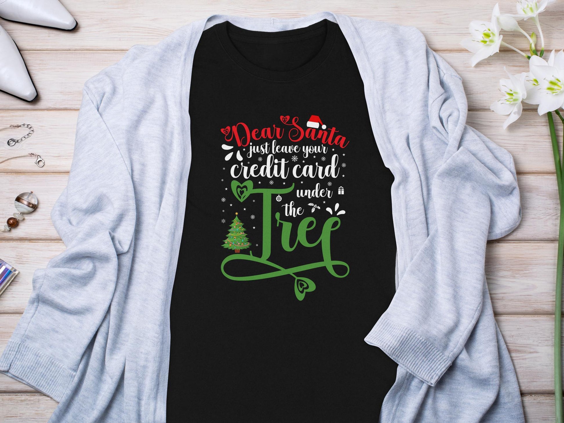 Get into the festive spirit with our "Dear Santa Tree" T-shirt! This delightful design features playful lettering and a charming Christmas tree, perfect for spreading holiday cheer. Made from high-quality, soft cotton, this T-shirt ensures both comfort and style. Ideal for holiday parties, family gatherings, or as a thoughtful Christmas gift. Available in various sizes, this T-shirt is easy to care for and perfect for any holiday occasion. Celebrate the season with this fun and festive T-shirt!