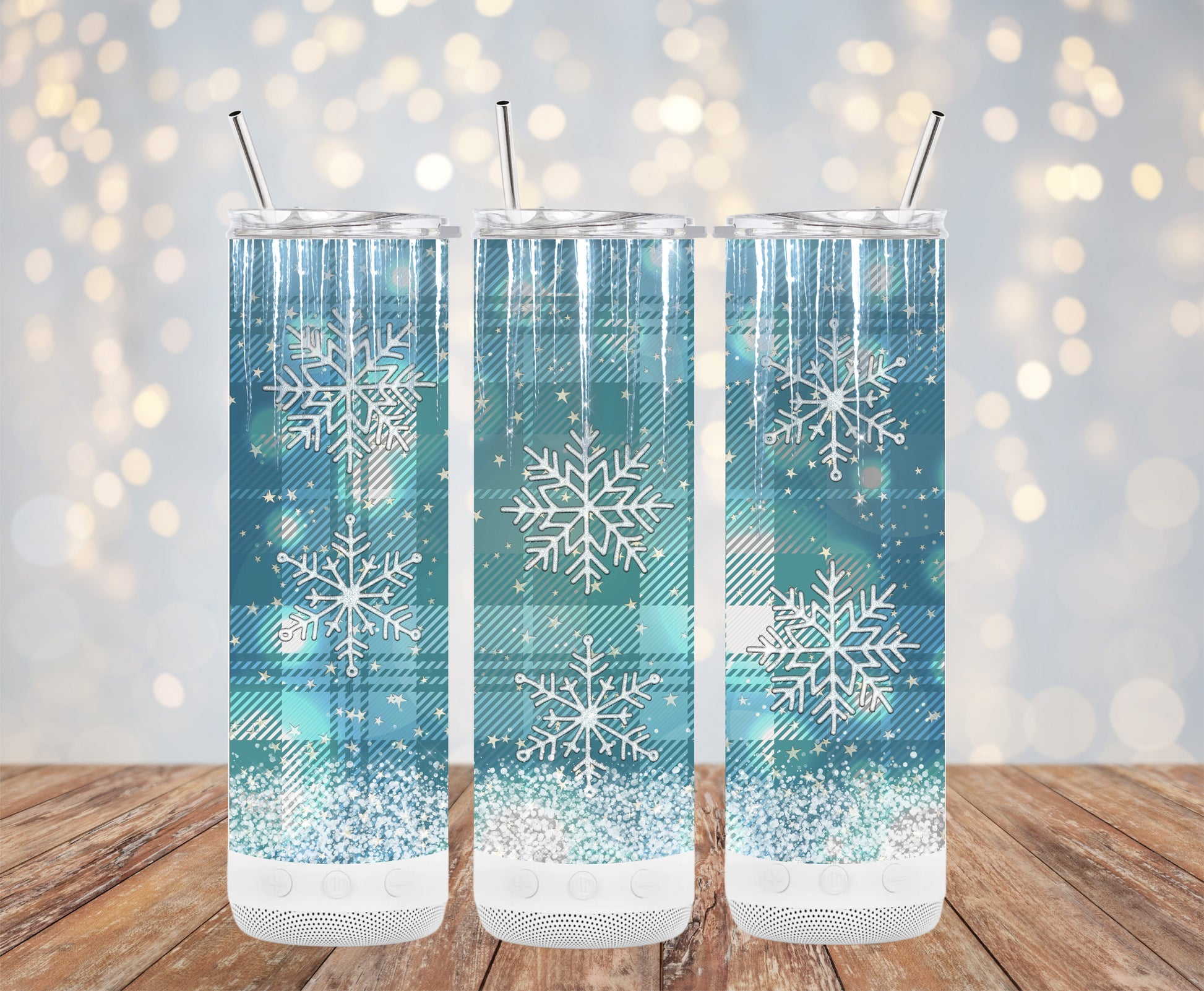 Add a touch of winter magic to your beverages with our stunning Snowflake Plaid Tumbler. Featuring a beautiful blend of blue and green plaid patterns, adorned with delicate white snowflakes and icicles, this tumbler captures the essence of a snowy wonderland. Perfect for both hot and cold drinks, this tumbler is an excellent gift for the holiday season or for those who love winter-themed accessories. Durable and stylish, it's an ideal addition to your everyday essentials.
