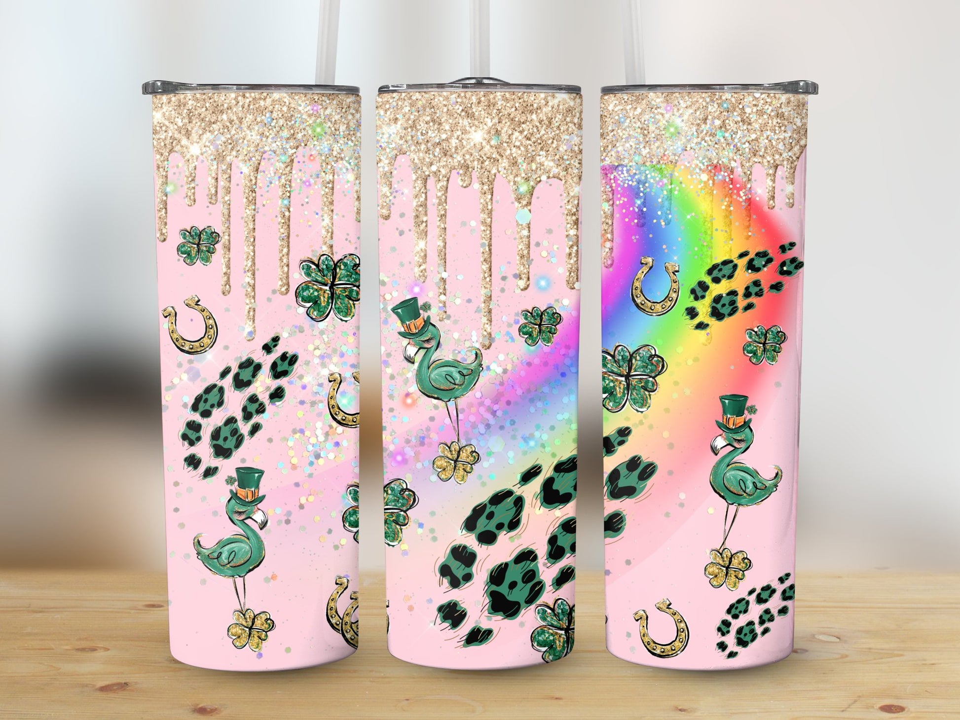 Flamingo Shamrock Horseshoe (St. Patrick's Tumbler)