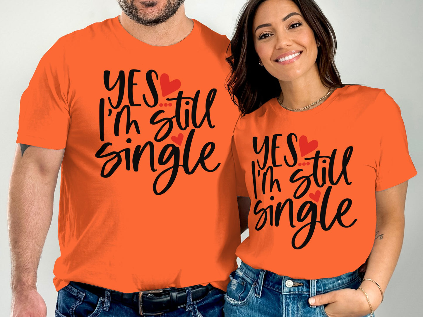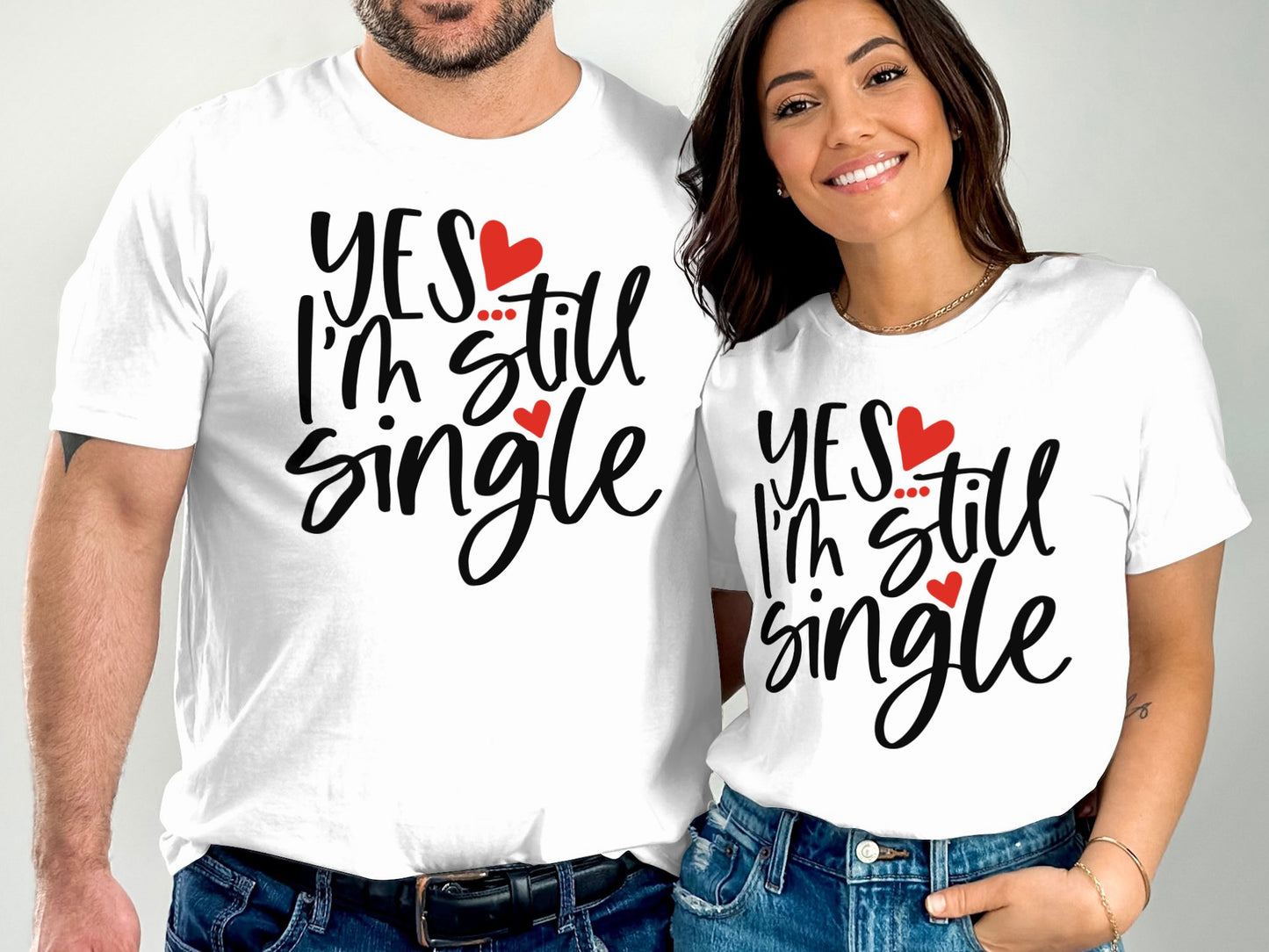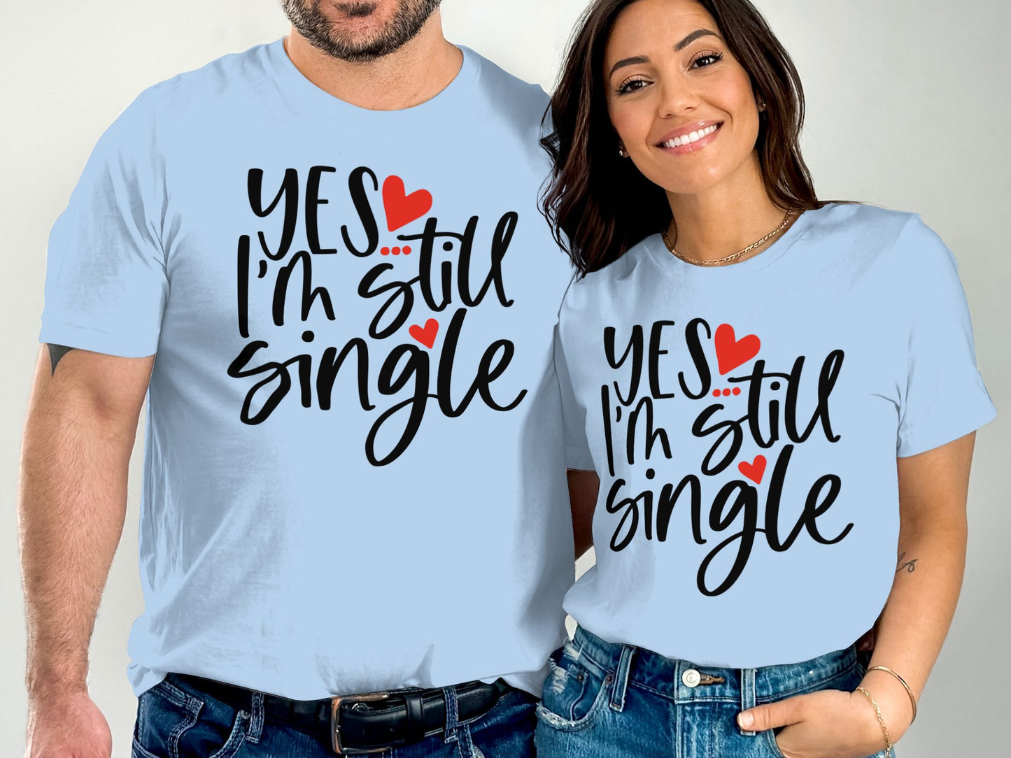 Embrace your single status with this trendy "Yes, I'm Still Single" T-shirt. Perfect for those who love to celebrate their independence, this shirt features bold black lettering with playful red hearts. Made from soft, high-quality fabric, it's comfortable for everyday wear. Show off your personality and let the world know you're happily single with this stylish tee.
