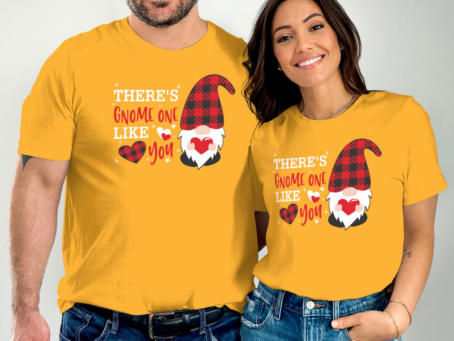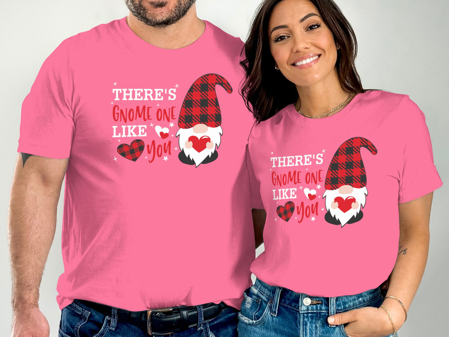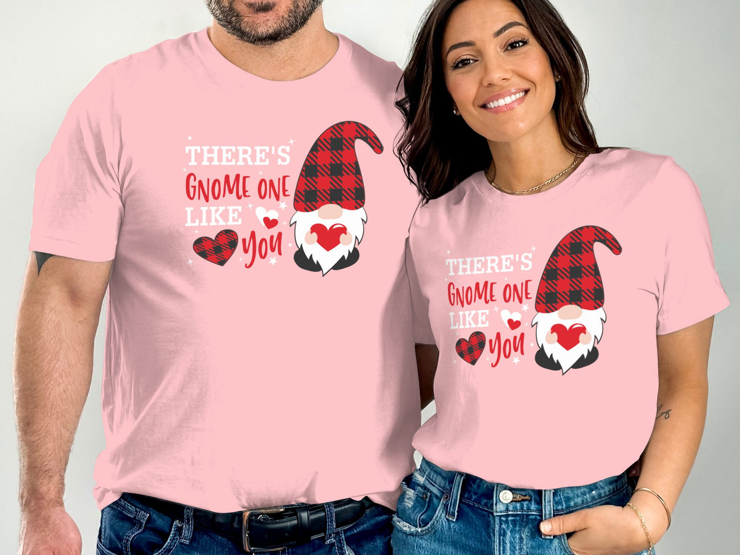 Celebrate love with our adorable "Gnome One Like You" t-shirt! Featuring a charming gnome holding a heart and a heartwarming message, this shirt is the perfect gift for someone special. Made from soft, high-quality fabric, it's comfortable and stylish for any casual occasion. Ideal for Valentine's Day, anniversaries, or just to show your love, this unique graphic tee will surely be cherished.