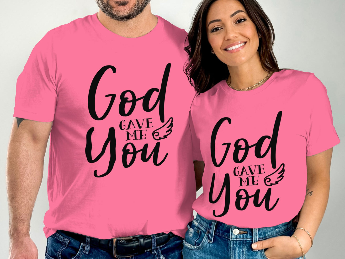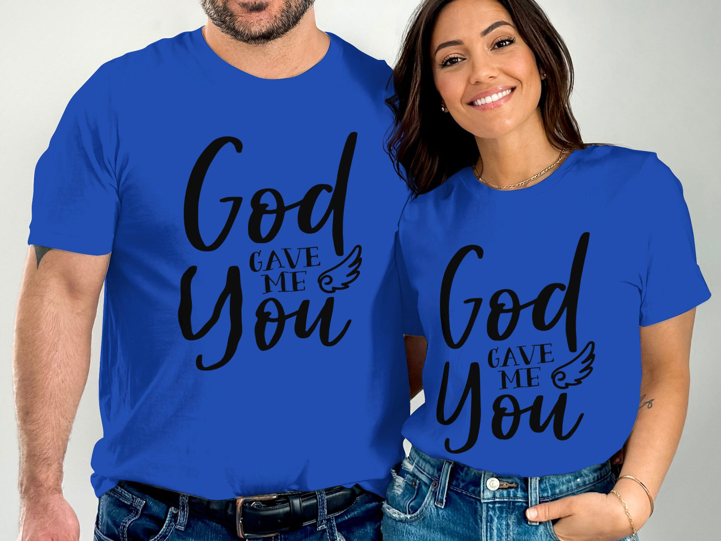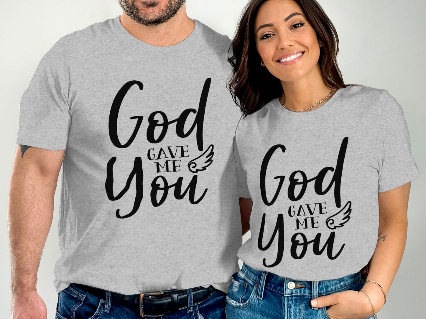 This stylish t-shirt features a motivational design with the heartfelt message "God Gave Me You" accented with a small wing. Made from high-quality material, it's perfect for casual wear or as a meaningful gift to express your appreciation for someone special. Comfortable, durable, and available in various sizes, it's ideal for everyday wear or special occasions.