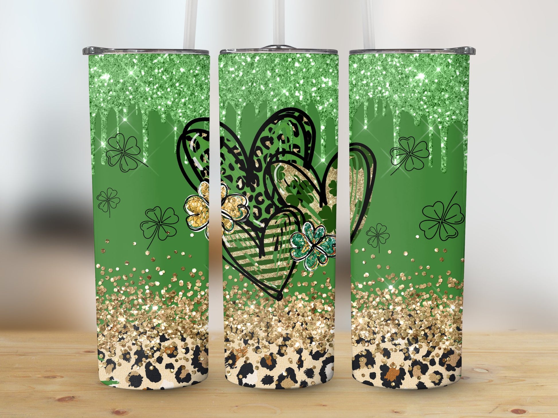Shamrock your way through the day with our Gold Glitter Hearts Leopard St. Patrick's tumbler! This flashy, festive tumbler is the perfect way to add some fun to your St. Patrick's Day celebrations. Drink your favorite beverage in style while keeping it cool all day long. Don't miss out on this lucky find, get yours today! (No leprechauns included).
