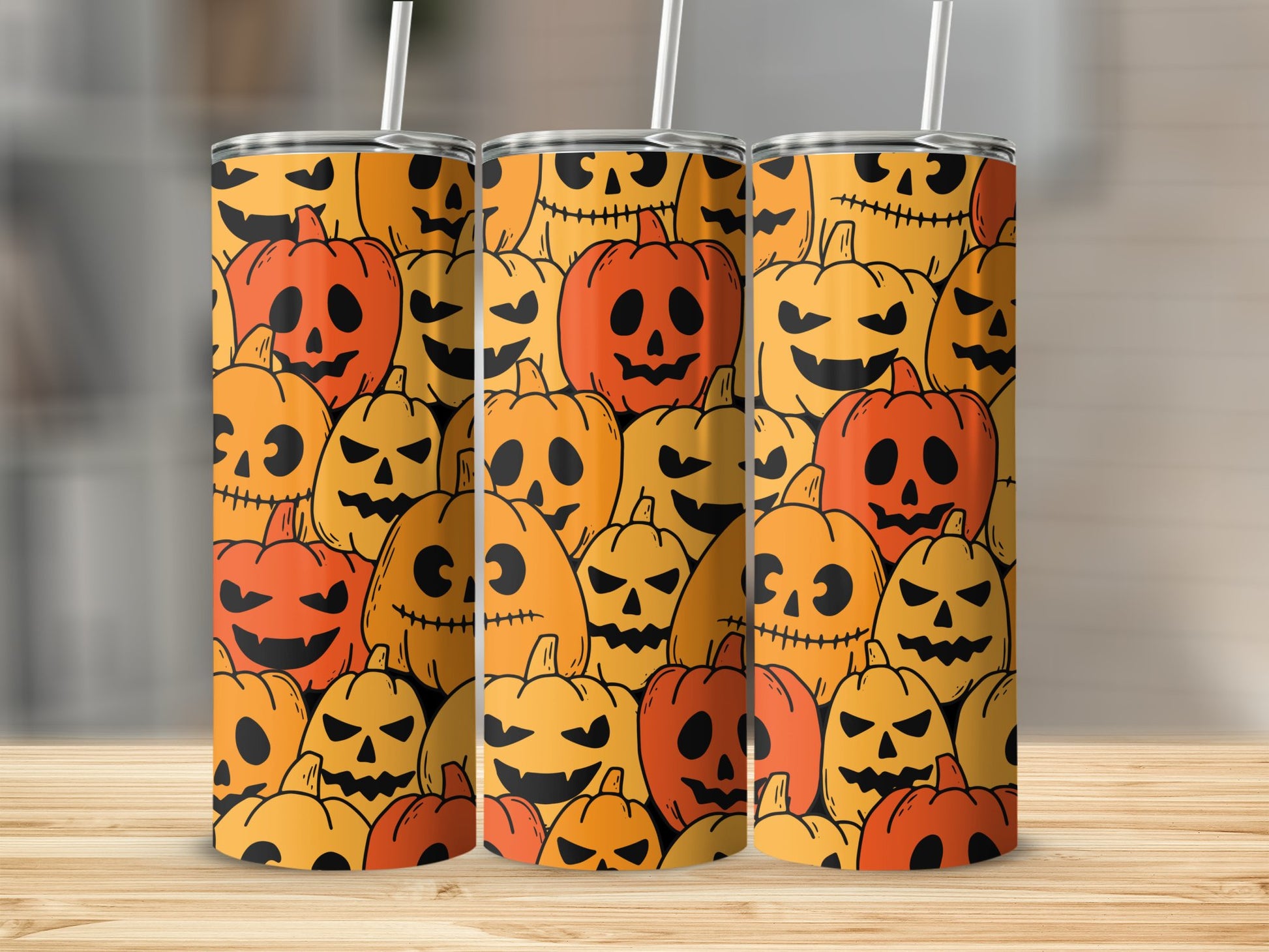 Celebrate Halloween in style with our Spooky Jack-o'-Lantern Tumblers. Each tumbler features a fun and festive pumpkin design, making it perfect for serving drinks at Halloween parties or enjoying your favorite beverage during the fall season. These reusable pumpkin-themed tumblers are great for adding a touch of holiday spirit to any occasion.