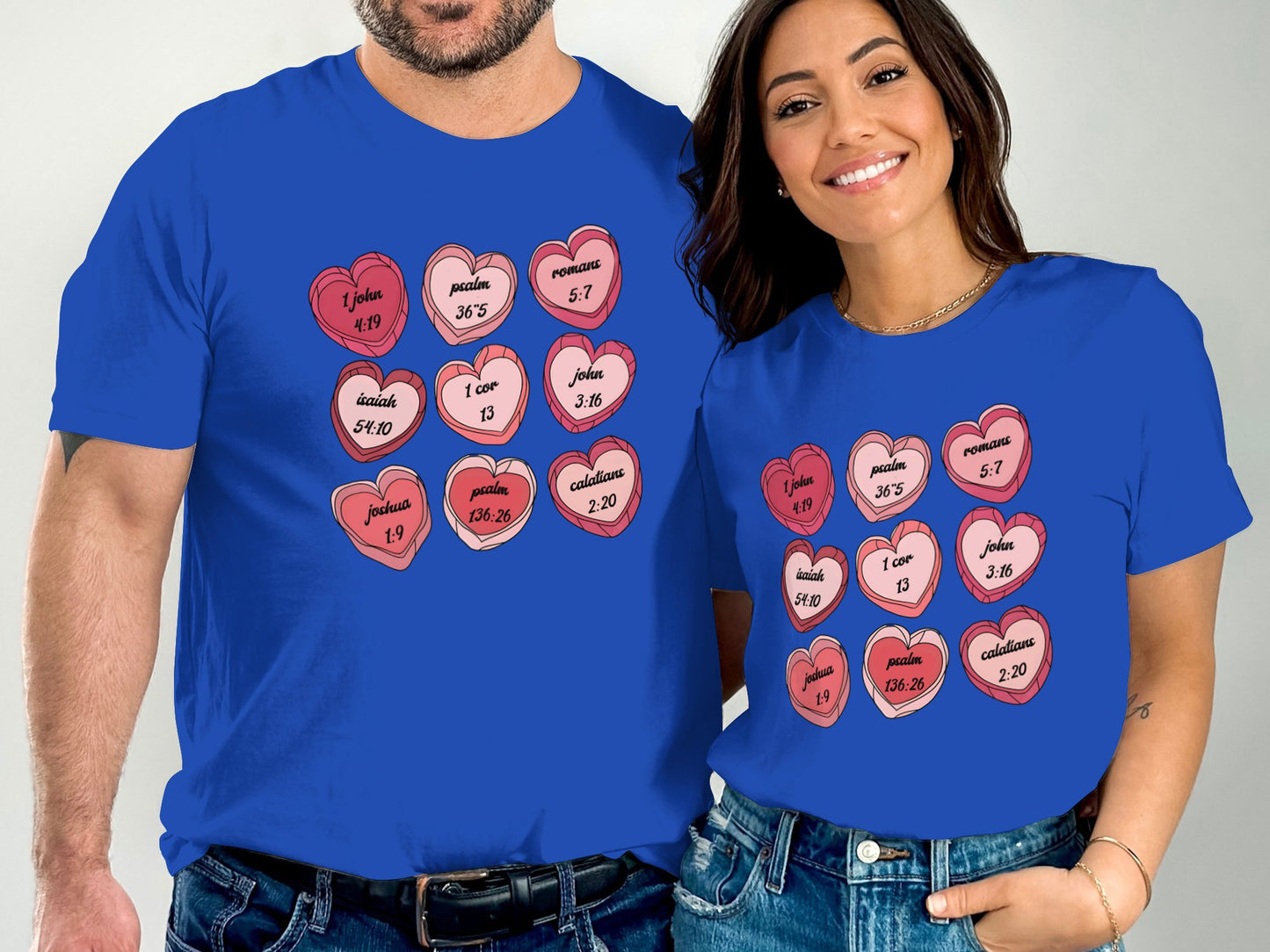 Embrace your faith with this beautifully designed Christian Hearts Scripture T-Shirt. Featuring a unique collection of scripture references inside heart shapes, this tee is perfect for anyone who wants to keep their favorite Bible verses close to their heart. Made with soft, high-quality materials, it ensures comfort and durability. Ideal for daily wear or as a gift for loved ones, this shirt allows you to express your faith in a stylish and meaningful way.