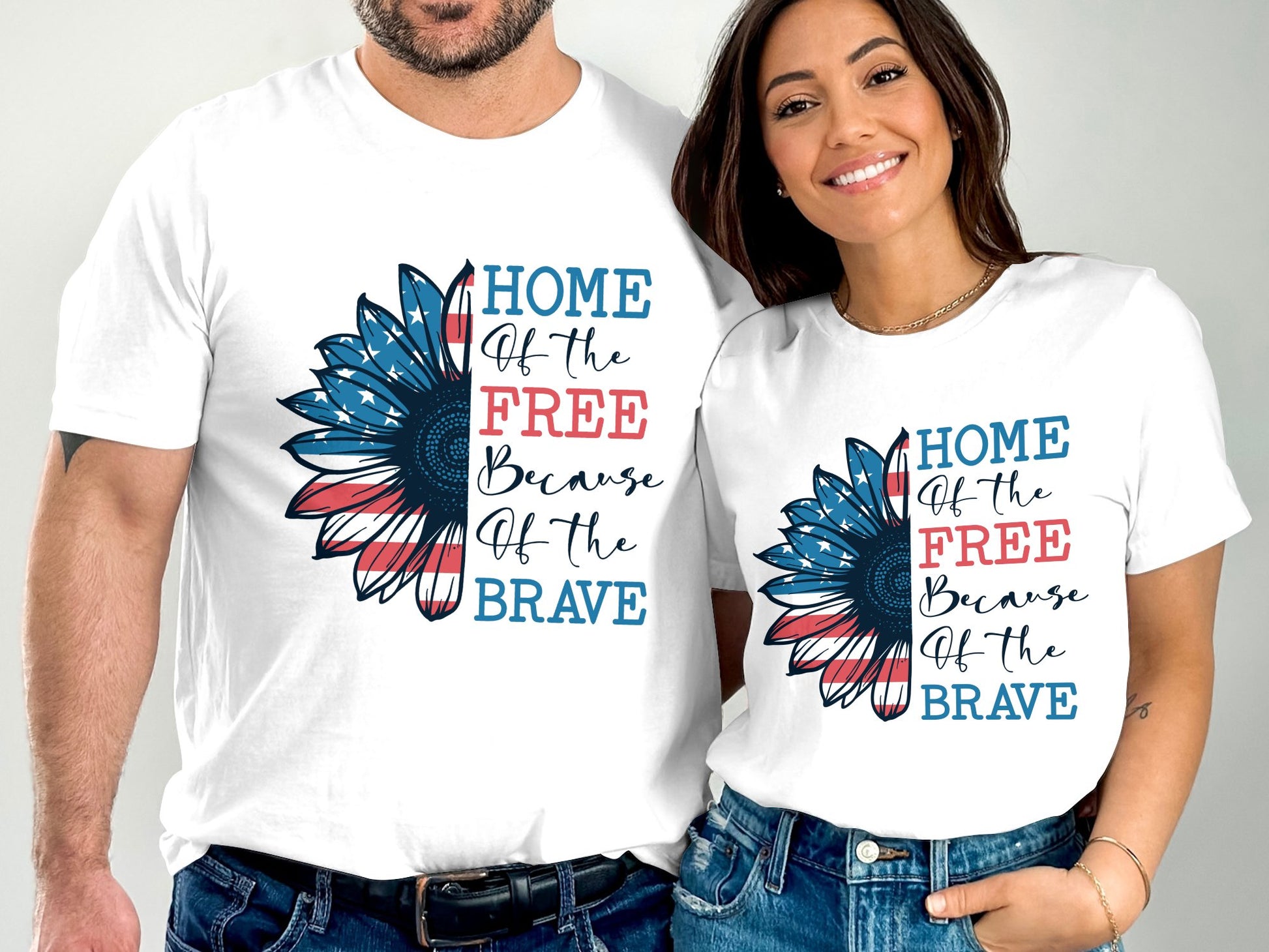 Show your stripes & honor our brave with this comfy classic. This Home of the Free Because of the Brave tee is made of 5.3oz, pre-shrunk 100% cotton or Sport Grey 90/10 cotton/poly blend. Enjoy the seamless fit & feel of double-needle stitched neckline, bottom hem & sleeves, 7/8" collar & shoulder-to-shoulder taping. Go ahead, get your stars & stripes on!
