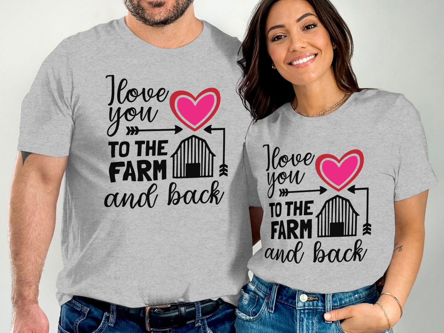 Show your love for the countryside with this charming "I Love You to the Farm and Back" T-shirt! Featuring a delightful design with a bold heart, arrows, and a cute farm scene, this T-shirt is perfect for anyone who cherishes rural life and heartfelt sentiments. Made from high-quality, comfortable fabric, it's ideal for casual wear, farm visits, or simply expressing your love for someone special. Whether for yourself or as a thoughtful gift, this shirt adds a touch of rustic charm to any wardrobe.