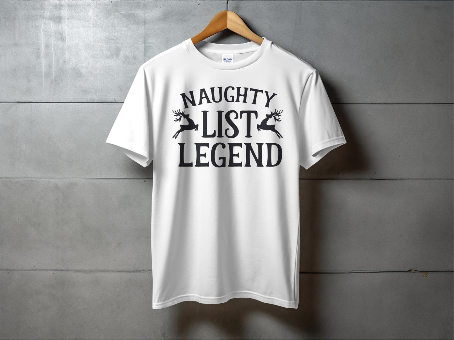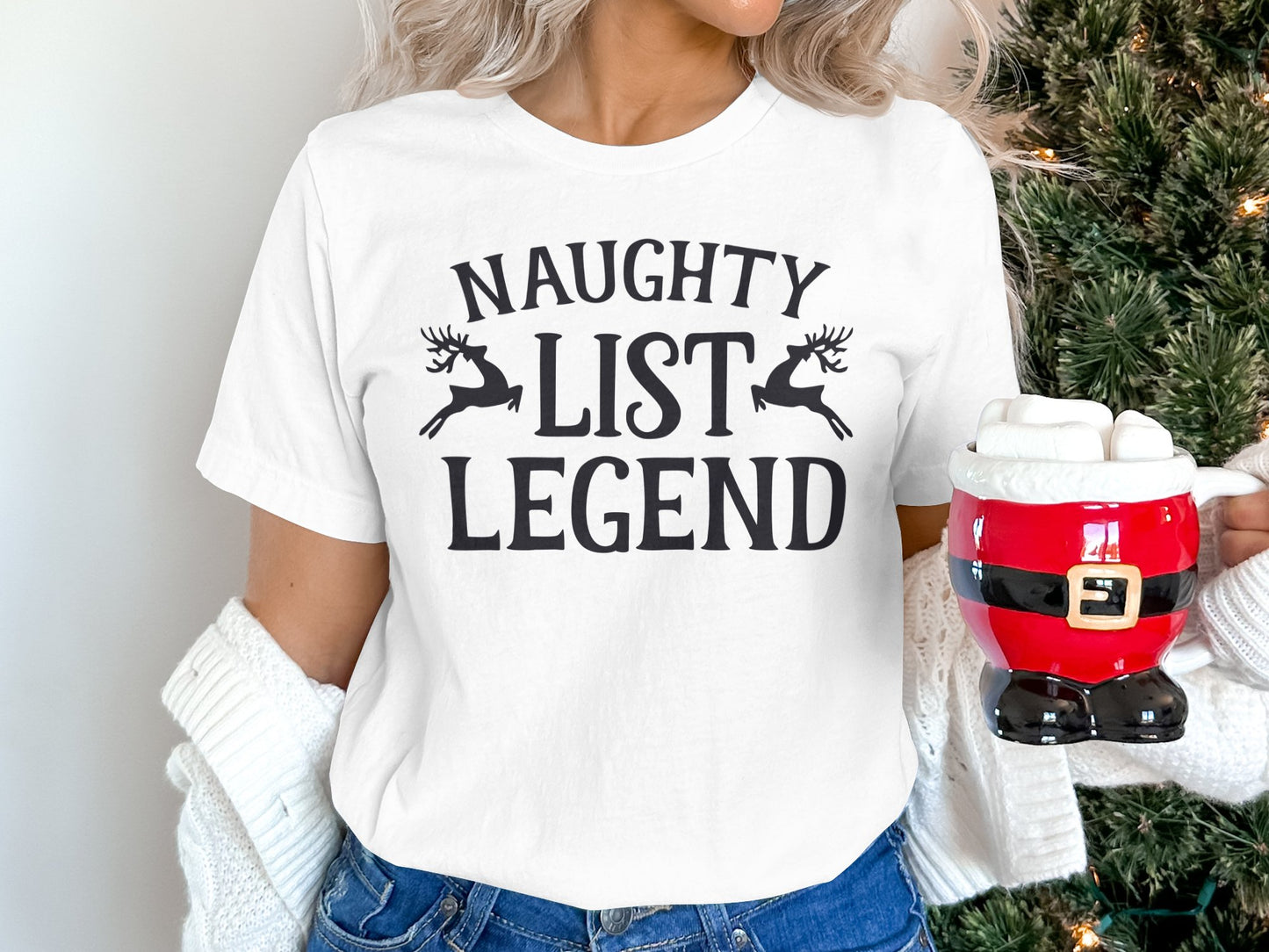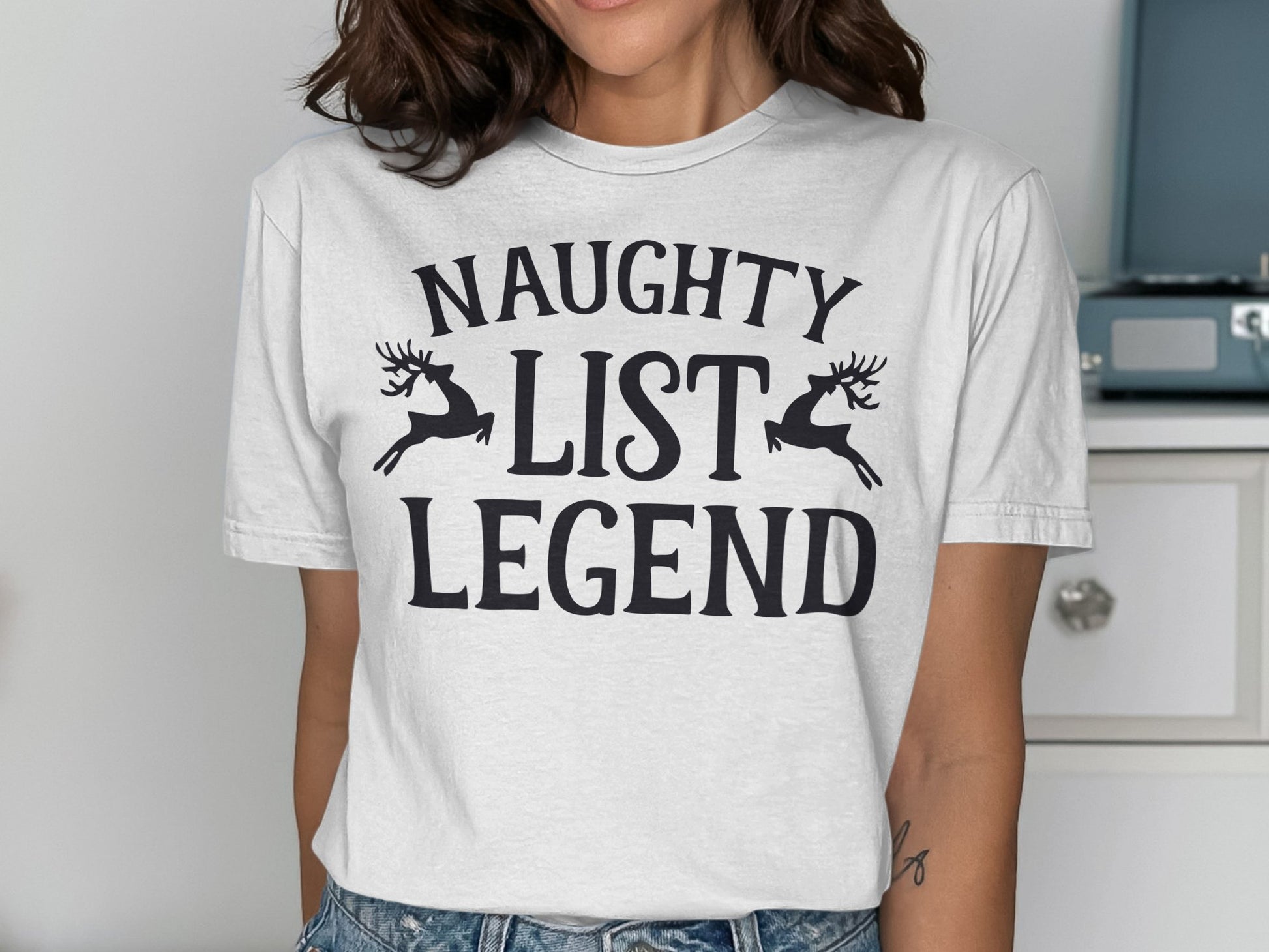 Embrace the holiday spirit with this playful "Naughty List Legend" T-shirt! Featuring a bold and humorous design with reindeer accents, this shirt is perfect for anyone who loves to add a bit of fun to their festive wardrobe. Made from high-quality, comfortable fabric, it's great for holiday parties, family gatherings, or just spreading cheer throughout the season. Available in multiple sizes to ensure a perfect fit for everyone.