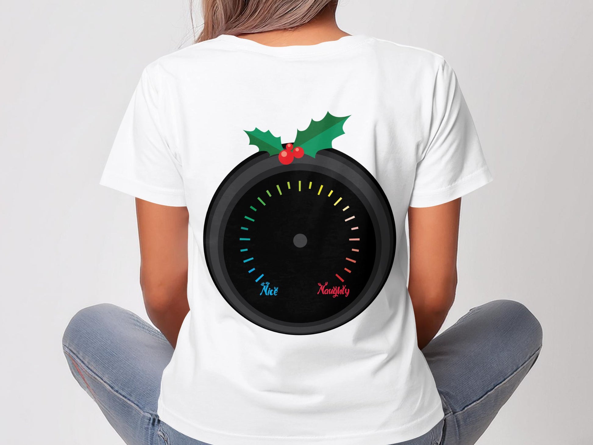Celebrate the holiday season with our festive "Naughty or Nice" T-shirt! Featuring a fun and playful design with a holiday-themed gauge, this shirt is perfect for spreading Christmas cheer and humor. Made with high-quality fabric, it's comfortable to wear and makes a great gift for friends and family. Available in various sizes.