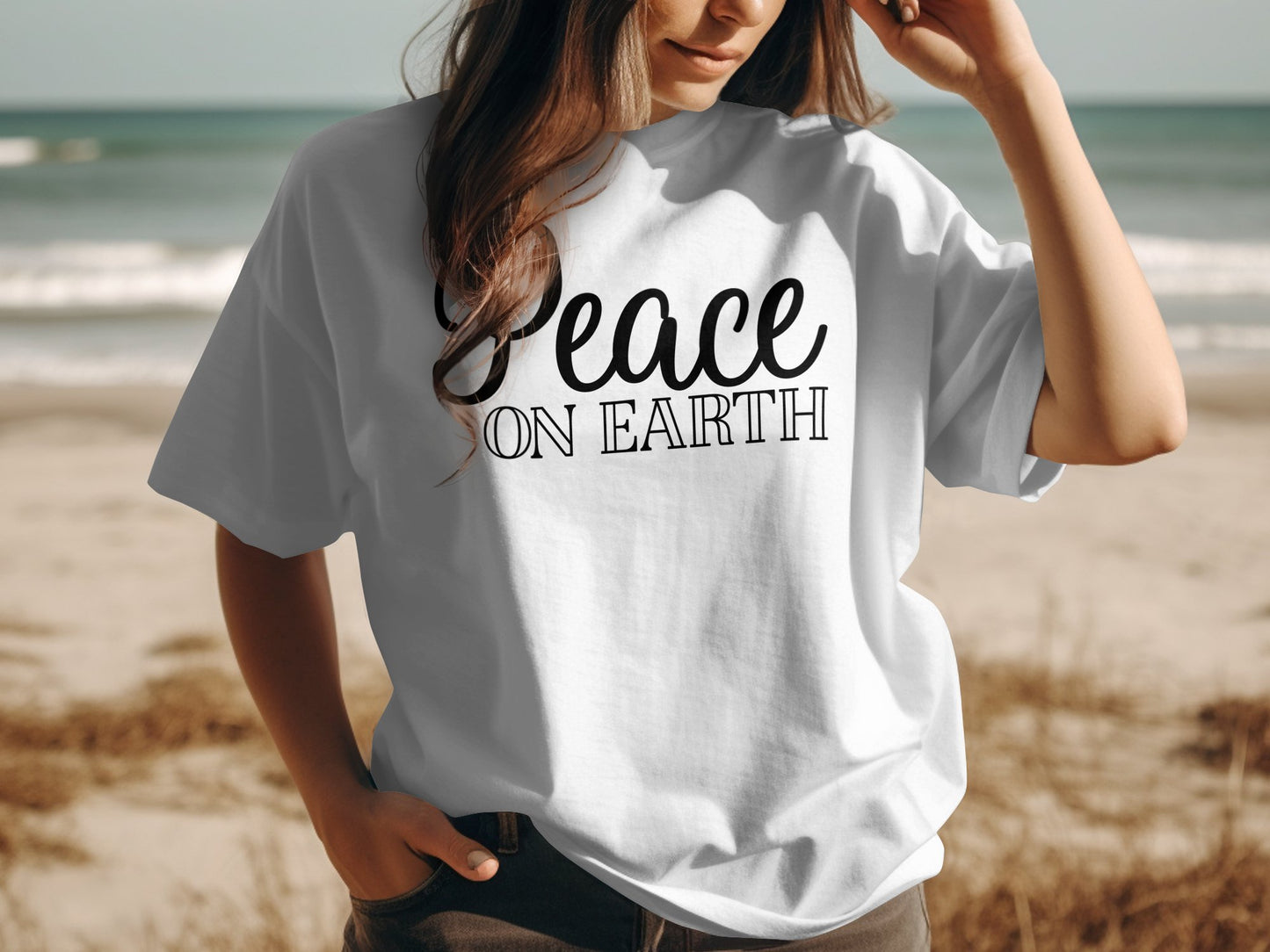 Spread a message of harmony and goodwill with this stylish "Peace on Earth" T-shirt. Perfect for everyday wear, this comfortable tee features a bold, uplifting design that promotes positivity and unity. Made from soft, high-quality fabric, it’s a great addition to any wardrobe. Show your support for peace and inspire others with this unique and meaningful shirt.