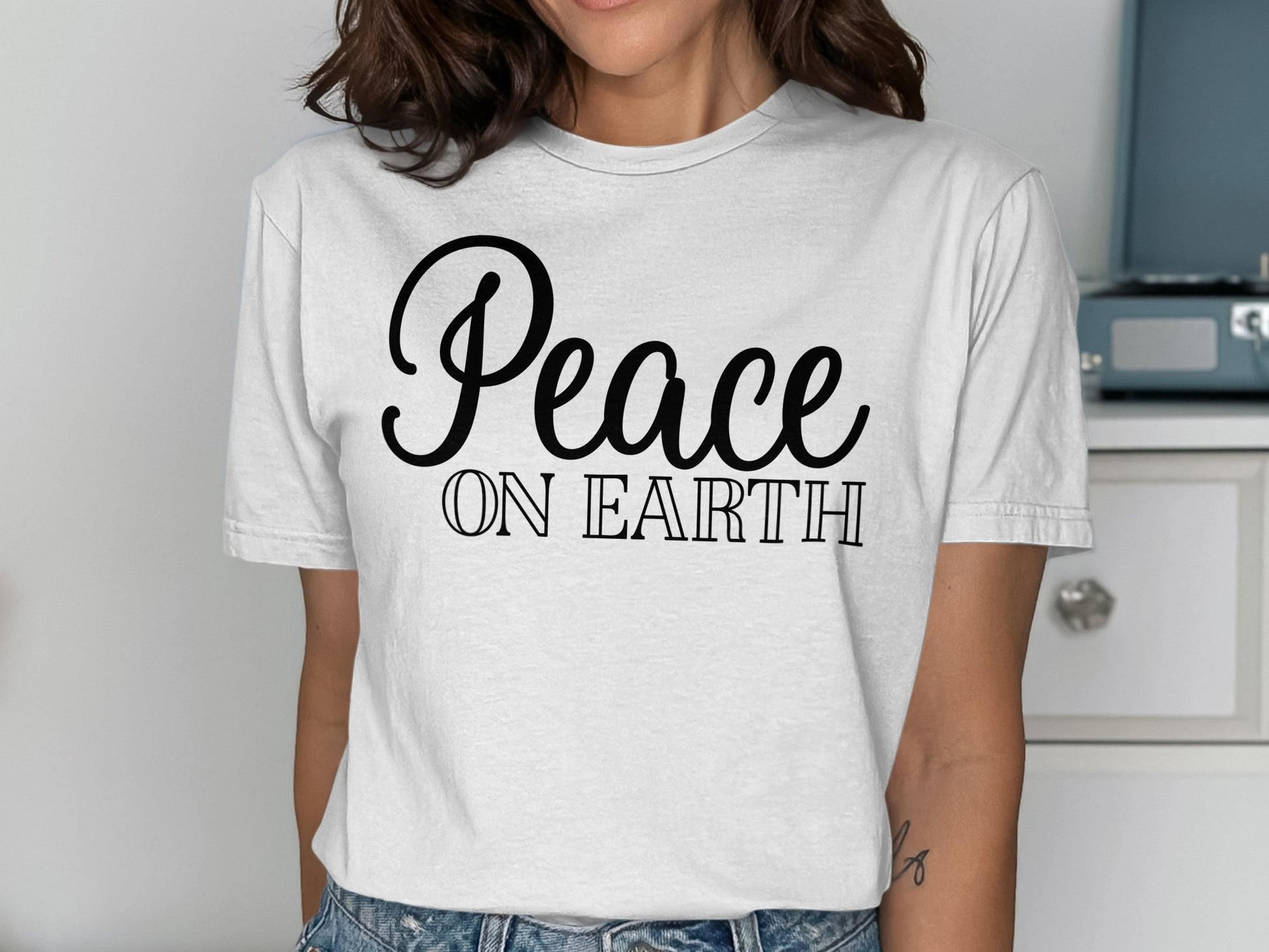 Peace On Earth Script Design Graphic Tee T-Shirts 6397939