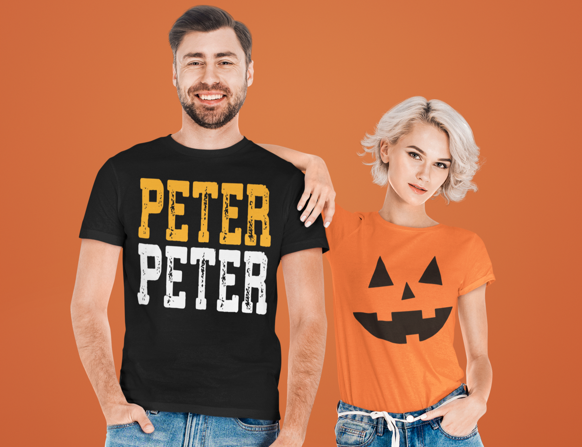 Get ready for Halloween with our fun and spooky graphic tees! The Peter Peter T-Shirt is perfect for fans of playful and humorous Halloween themes. Pair it with our Pumpkin Face Tee for a perfect couples matching outfit. Whether you're heading to a Halloween party or just enjoying the spooky season, these shirts are sure to make a statement. Comfortable and stylish, they are a must-have addition to your Halloween wardrobe.