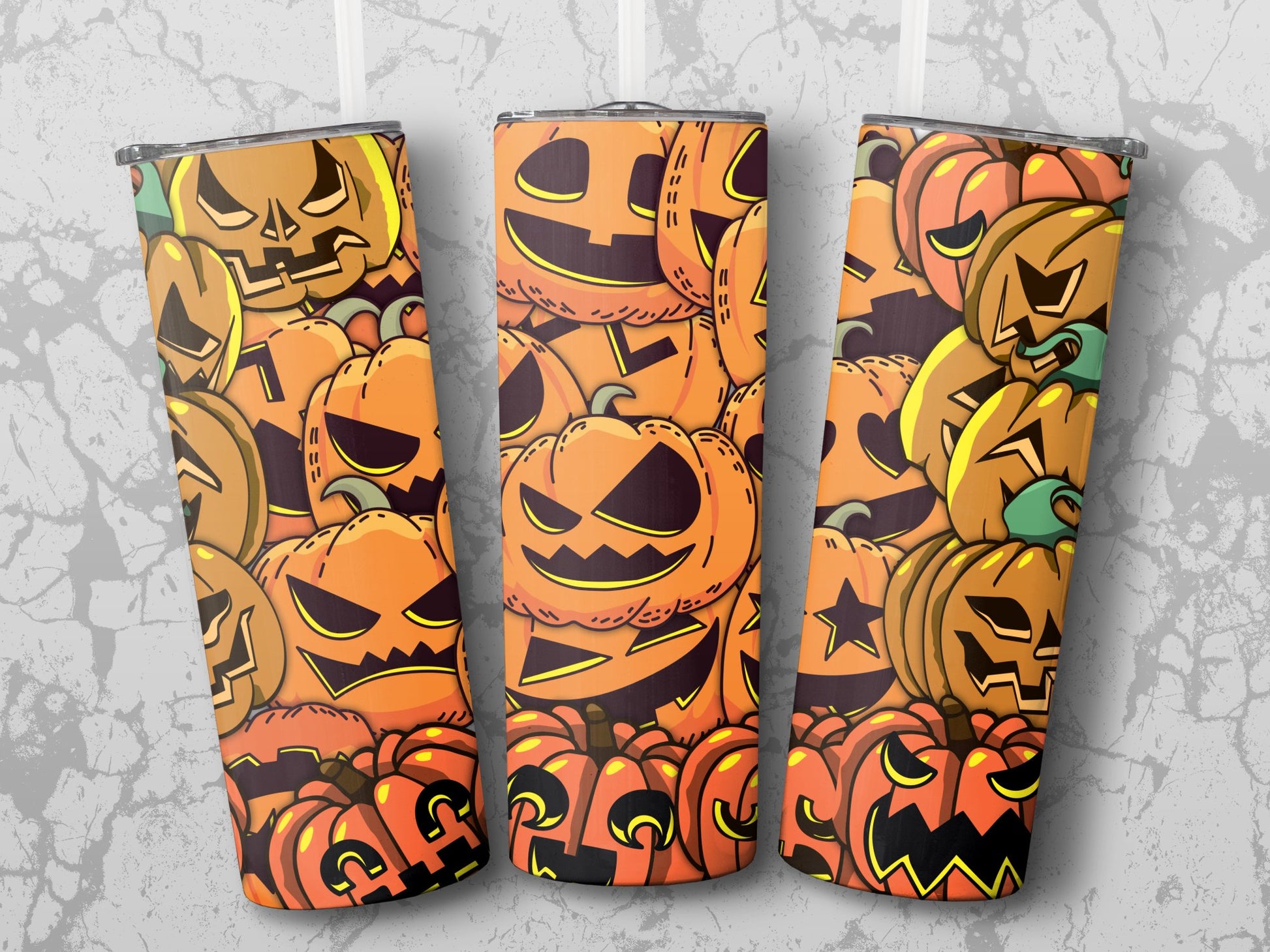 Embrace the Halloween spirit with our Pumpkin Tumbler! Featuring a spooky and fun design of various jack-o-lantern faces, this tumbler is perfect for fall festivities and sipping your favorite beverages on-the-go. Great for both hot and cold drinks, it makes an excellent gift for Halloween lovers.