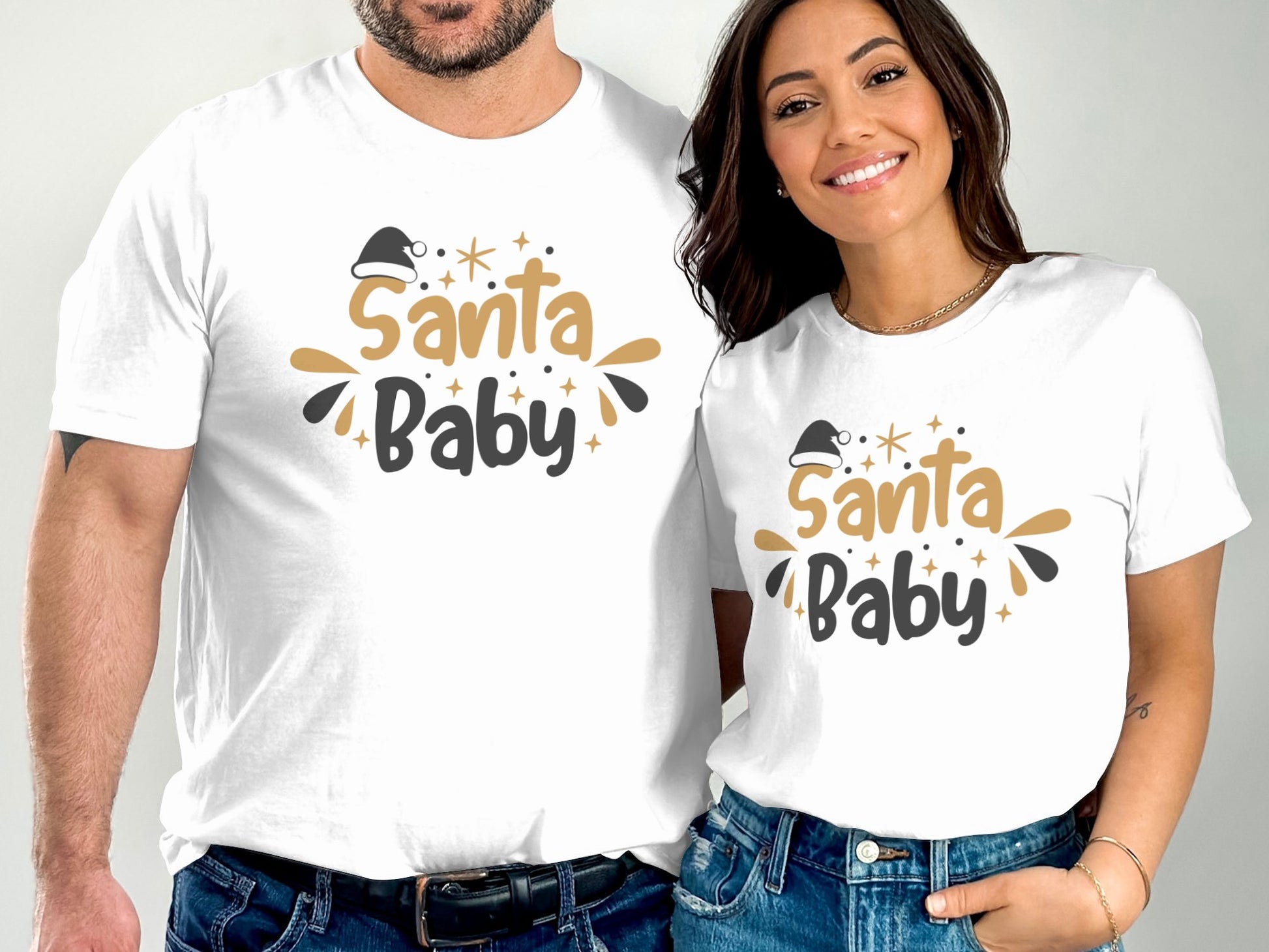 Celebrate the holiday season with this adorable "Santa Baby" T-Shirt! Featuring festive text in bold lettering and a cute Santa hat design, this shirt is perfect for spreading Christmas cheer. Made from soft, comfortable fabric, it's great for casual wear or holiday gatherings. Surprise your loved ones with this fun and festive gift. Available in multiple sizes.