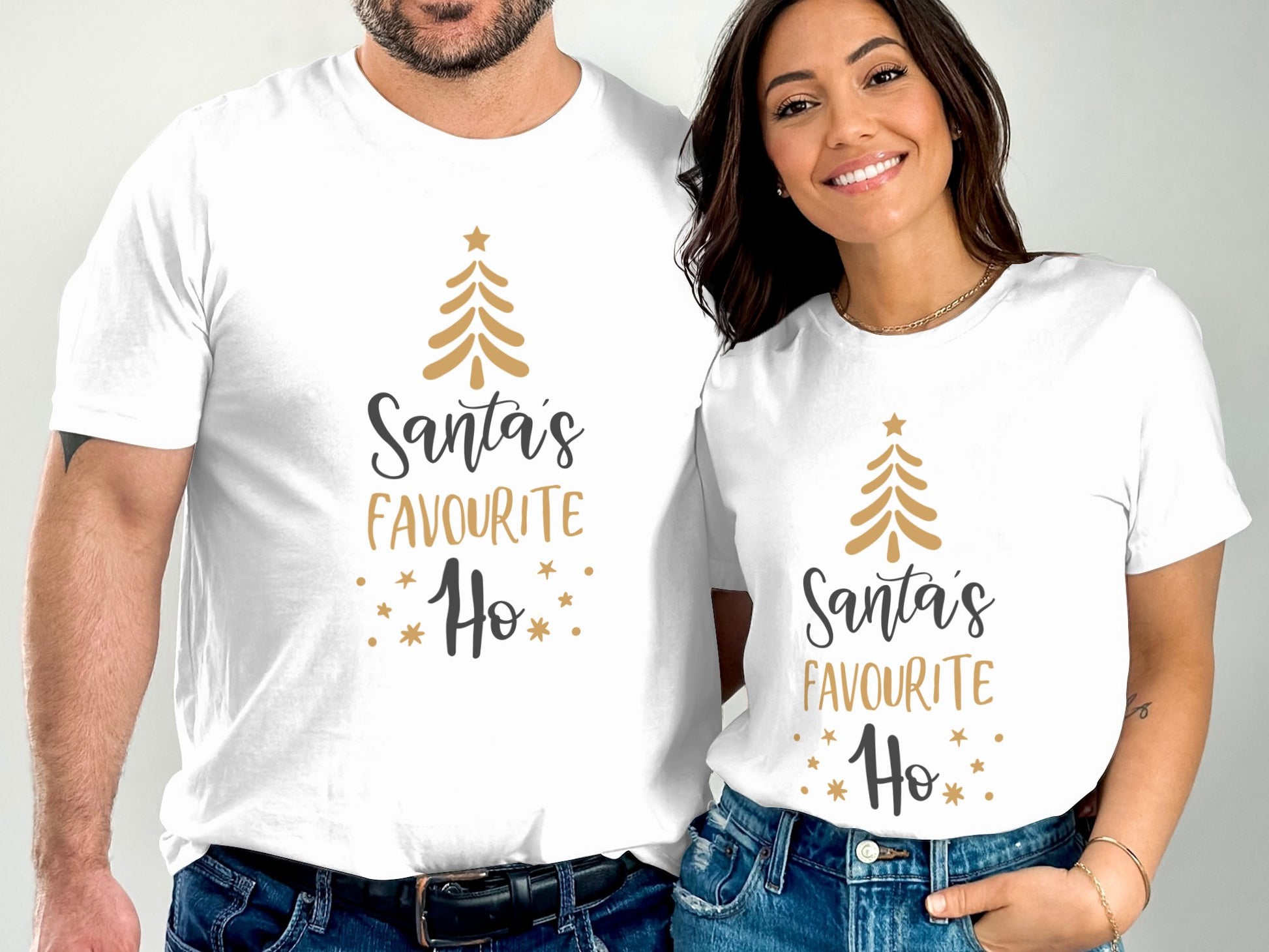 Get festive this holiday season with our hilarious "Santa's Favourite Ho" T-shirt! Crafted from soft, breathable fabric, this tee is perfect for Christmas parties, holiday gatherings, or just spreading some holiday cheer. The playful design features a stylish font and a whimsical Christmas tree graphic. This makes a fantastic gift for friends or a fun addition to your own wardrobe. Available in multiple sizes, this shirt promises both comfort and laughs. Celebrate the season with some humor and charm!