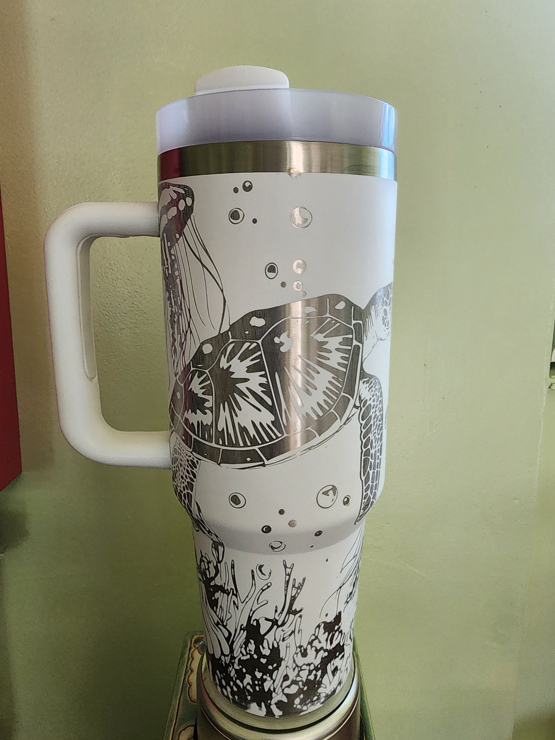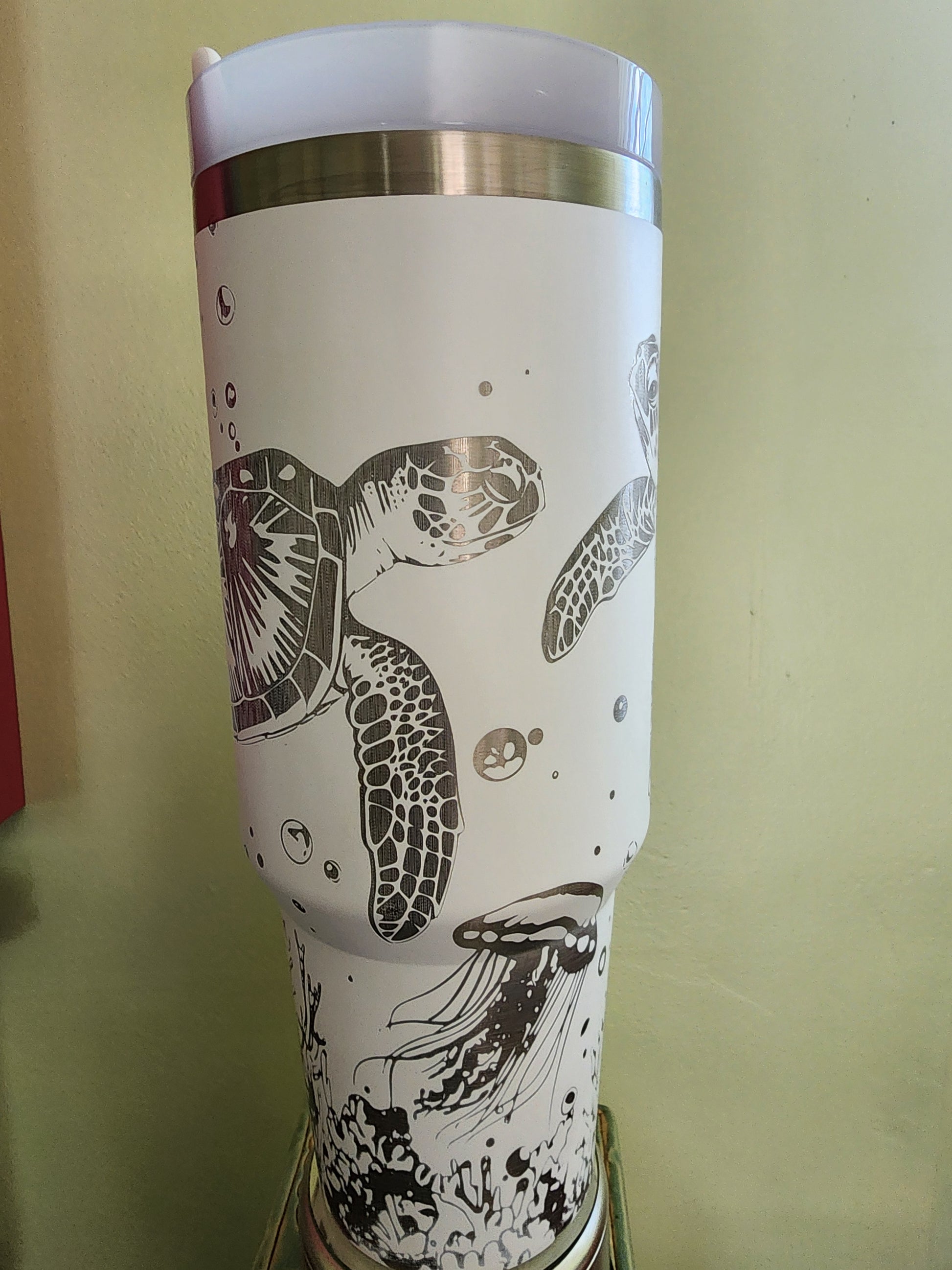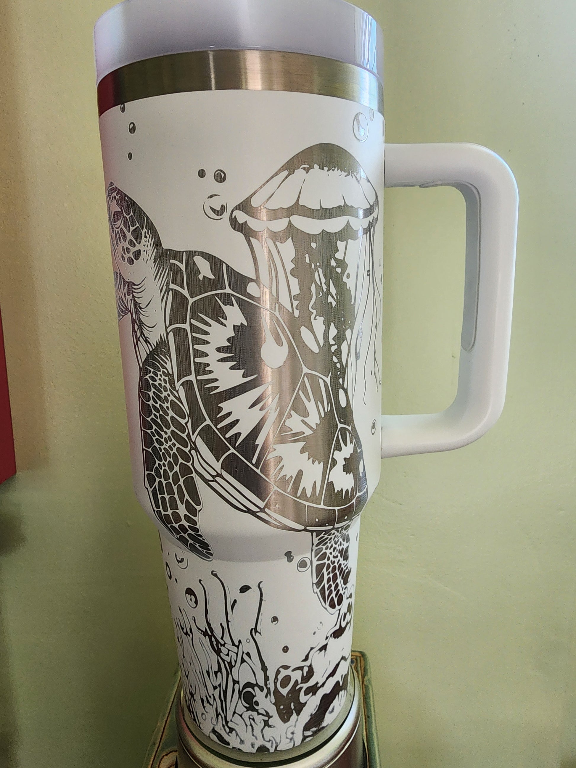 Expertly designed for the ocean lover, the Sea Turtle Laser 40oz. Tumbler offers a generous capacity for your favorite drinks. Made with high-quality materials and precision laser engraving, this tumbler is perfect for keeping your beverages at the ideal temperature while reducing single-use plastic waste.