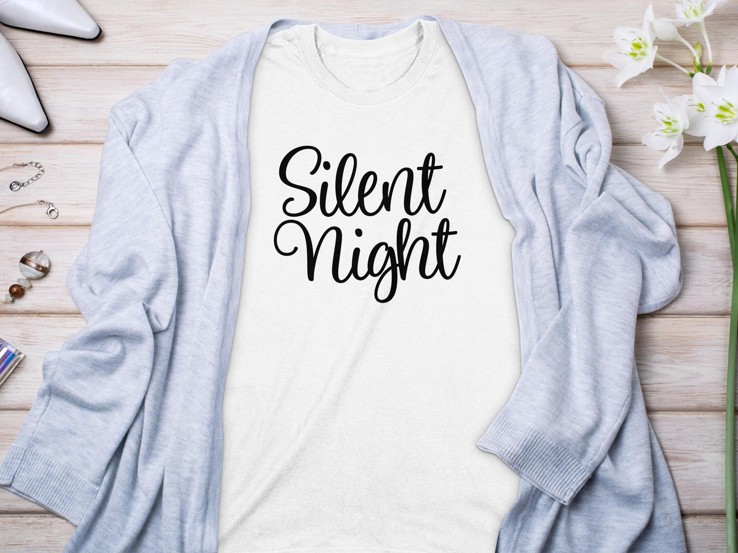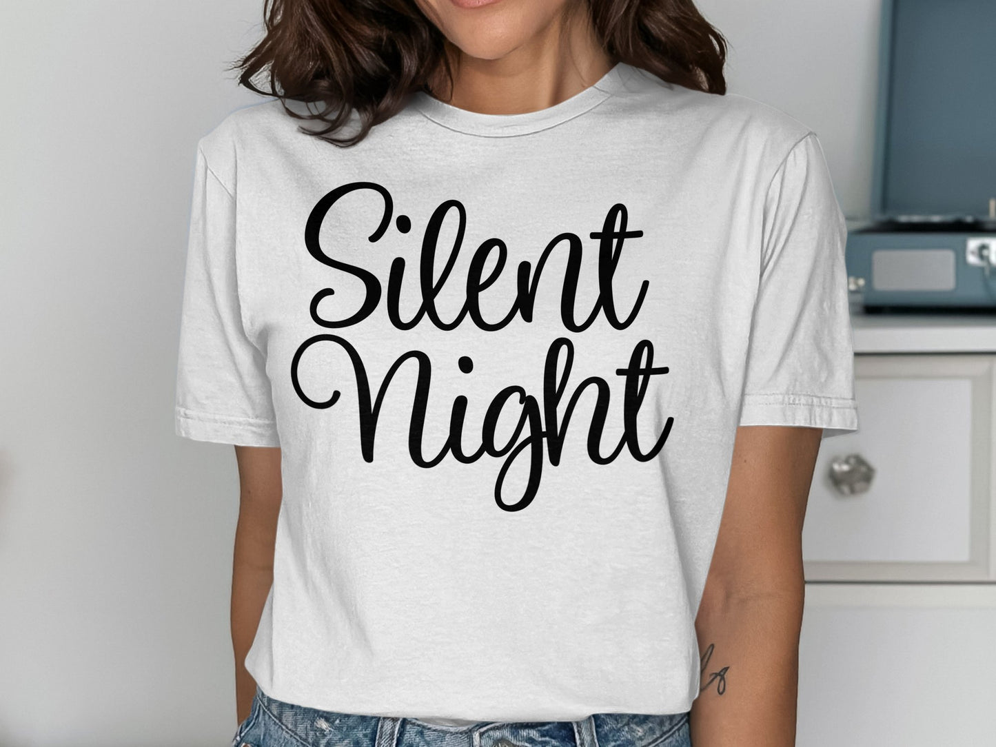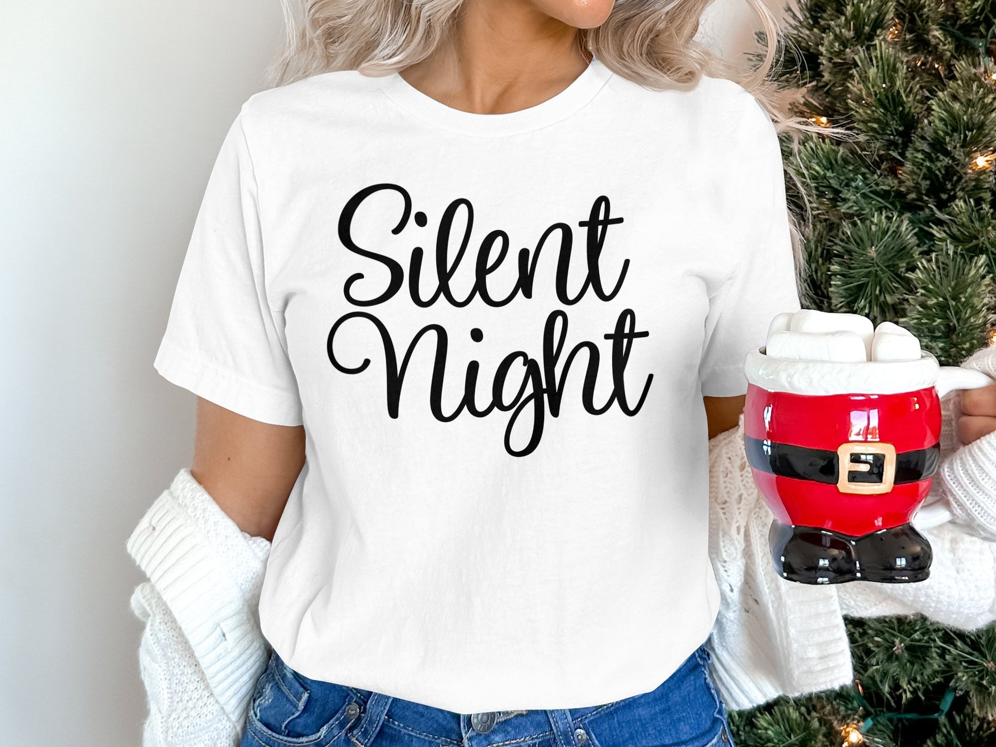 Embrace the holiday spirit with our "Silent Night" T-shirt. Perfect for cozy winter nights, this shirt features a festive design that captures the essence of Christmas. Made from high-quality cotton, it's comfortable and stylish, making it an excellent choice for your winter wardrobe. Whether you're cuddling by the fireplace, decorating the tree, or singing carols, this T-shirt is a must-have for the season. Available in multiple sizes and colors to suit your style.