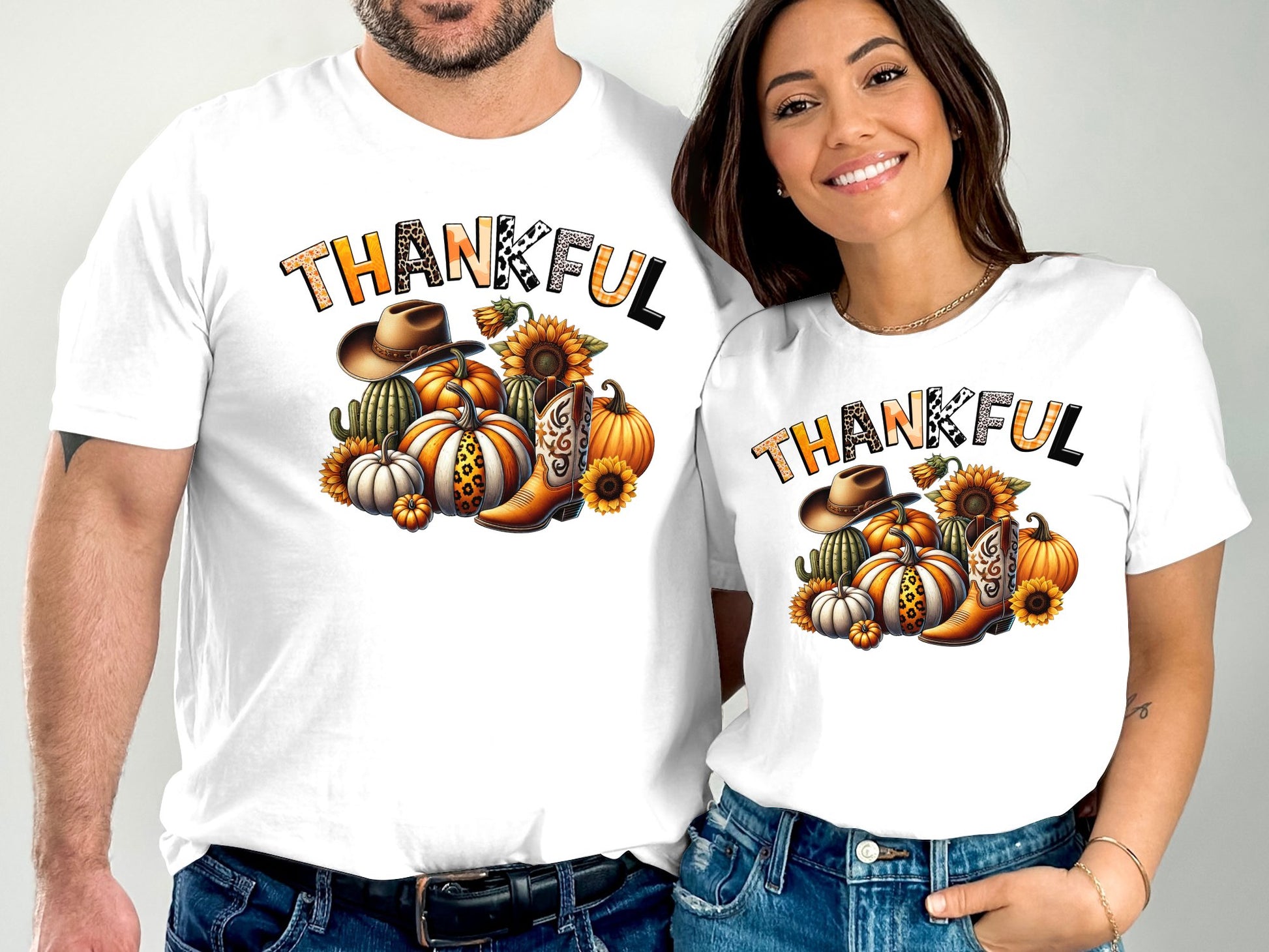 Show off your quirky side with our Thankful Western T-shirt! Embrace your inner cowboy (or cowgirl) while also expressing gratitude. Who knew a simple tee could be so versatile? (Yee-haw!)